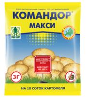 Для обработки клубней перед посадкой. Защищает картофель от проволочника, от колорадского жука и от комплекса болезней.
